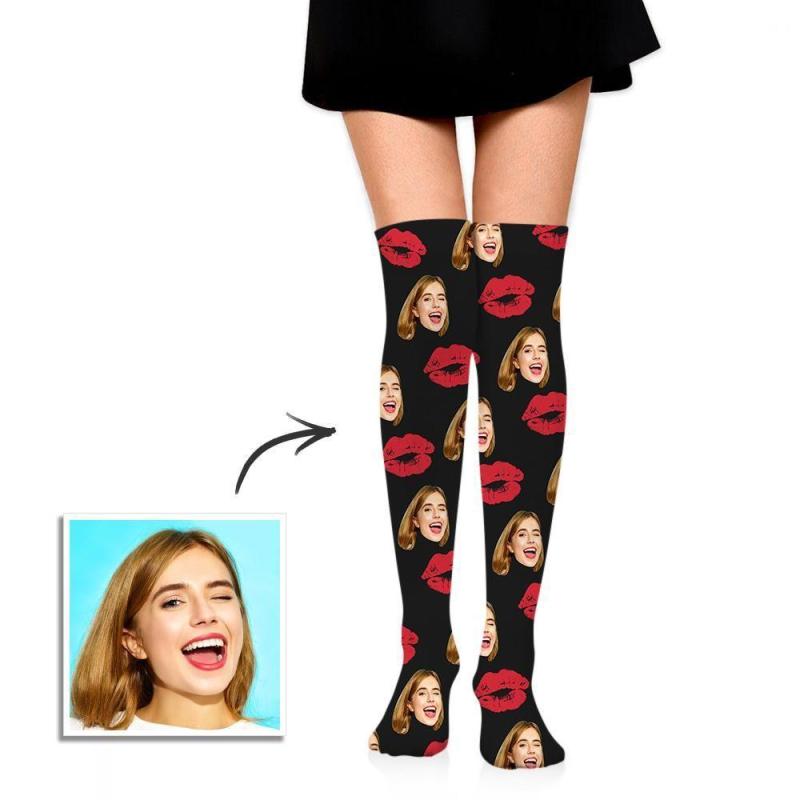 Personalised Socks Knee High Printed Picture Adult Tube Socks for Girlfriend
