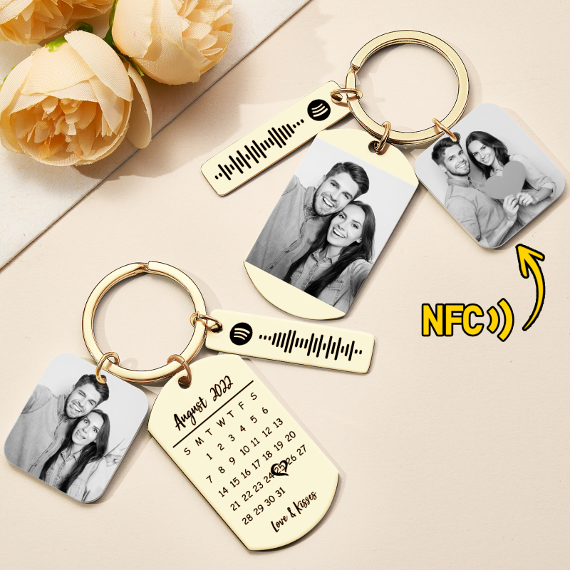 Personalized Spotify Keychain Custom Picture & Music Song Code Couples Photo Keyring Gifts for Boyfriend