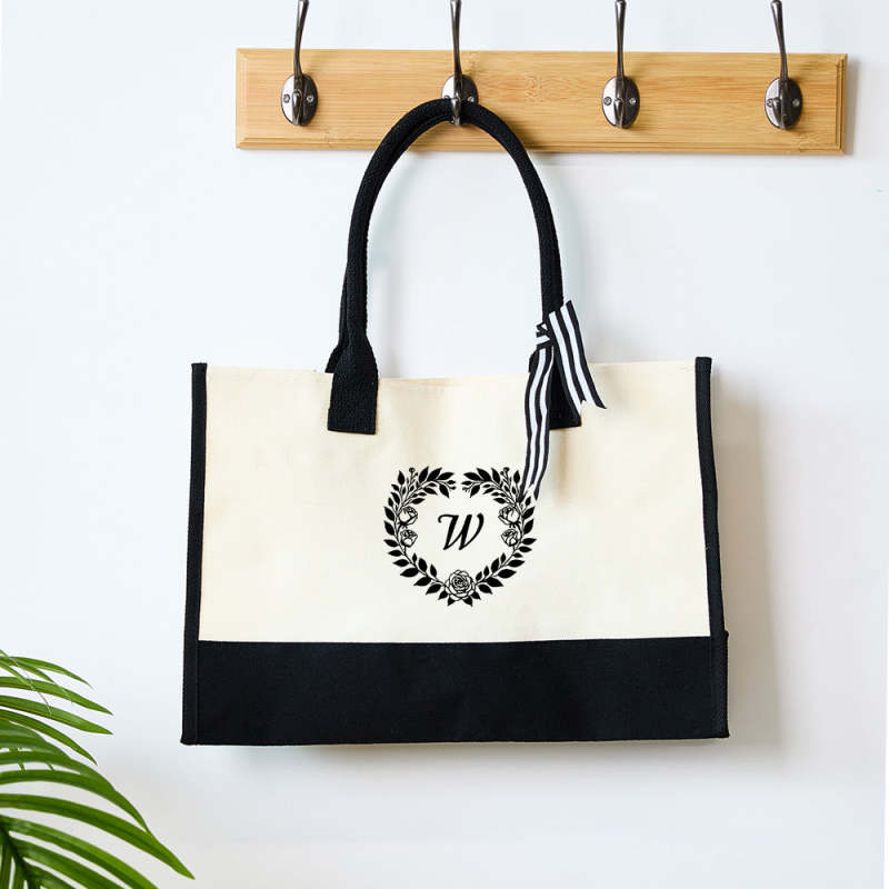 Personalised Wreath Initial Canvas Tote Bag Large Capacity Tote Bag Gift for Women