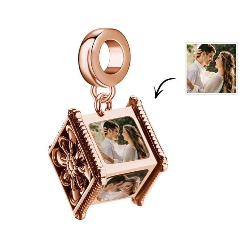 Photo Charm Bead That Hold 4 Picture Customized Four Sides Picture Bead Fit Snake Chain Bracelet Ideal Gifts Ever