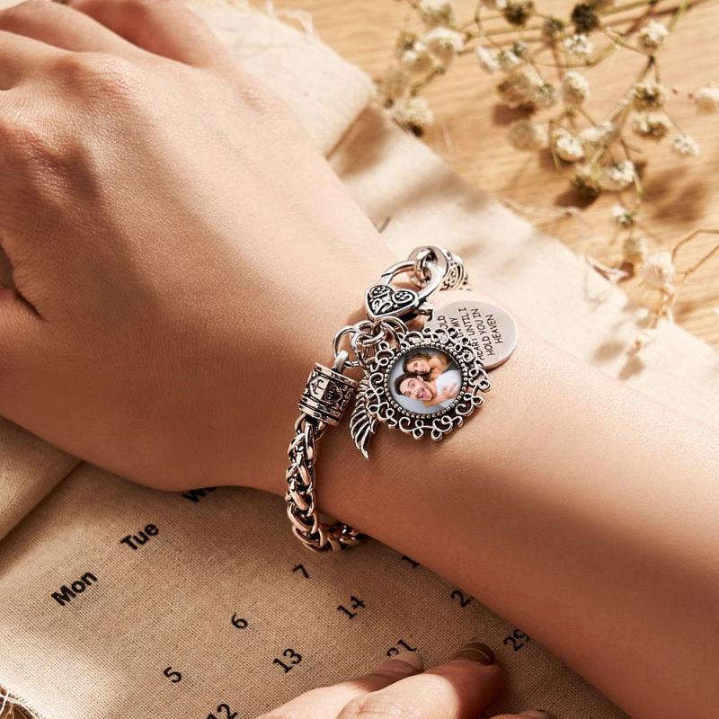 This stainless steel photo memorial bracelet is the perfect way to keep a loved one close. Crafted from stainless steel and featuring an angel wing design, it's an elegant piece of jewelry and a thoughtful way to honor a loss. Capture a memory on this beautiful photo memory gift for a treasured keepsake.