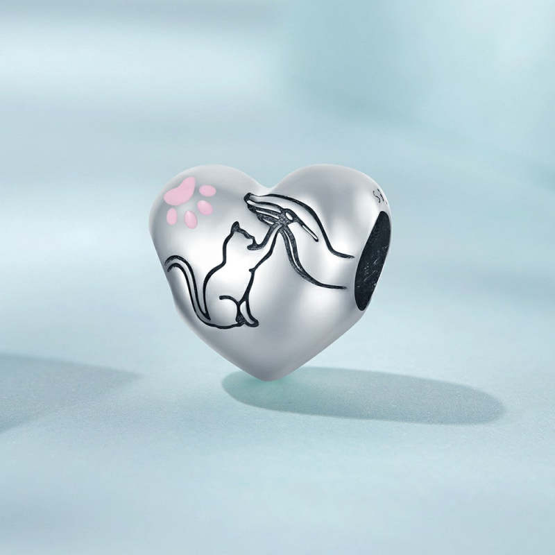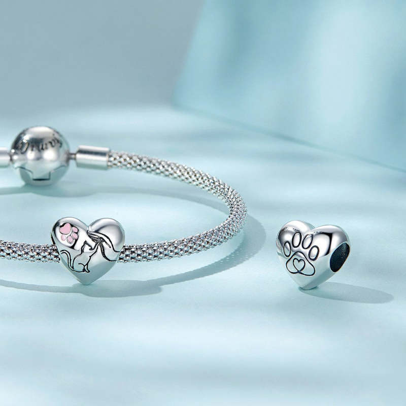 Pink Paw Prints Enamel Charm Silver Gift for Pet Lover
