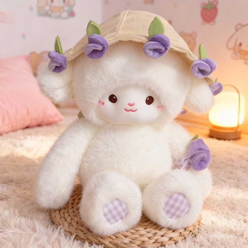 🐑 Adorable lamb plush wearing a removable hat with roses