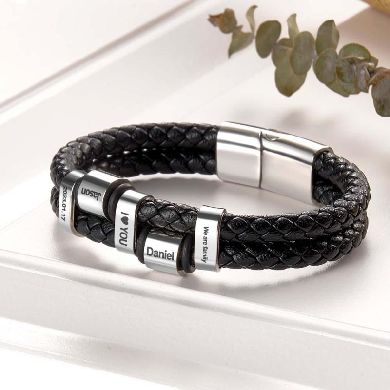 This bracelet would make a unique and meaningful gift for any occasion. The woven design adds a stylish touch to the bracelet while the option to engrave names allows for a personal touch. Whether it's a gift for a father, husband, boyfriend, brother, uncle, best friend, or even for oneself, By all occasions: Father's Day, Valentines, Mother's Day, Wedding, Anniversary, Birthday, Christmas ect.This custom bracelet is sure to be cherished.