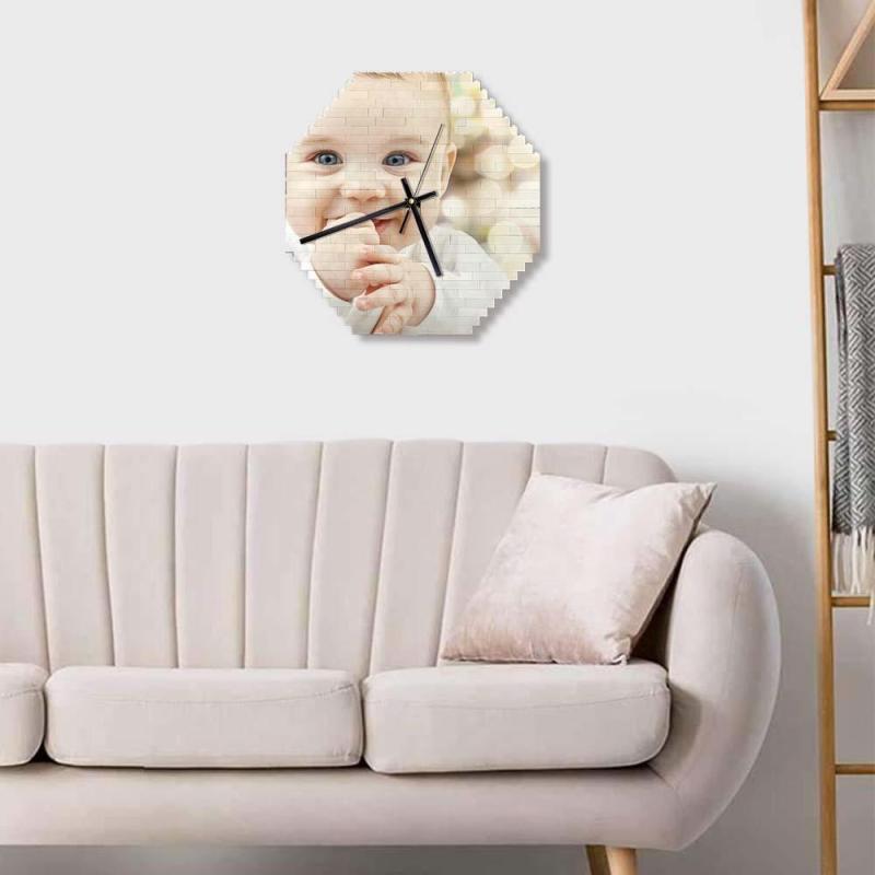 Custom Building Blocks Wall Clock Personalised Puzzle Custom Photo Brick Clock Gift For Kids
