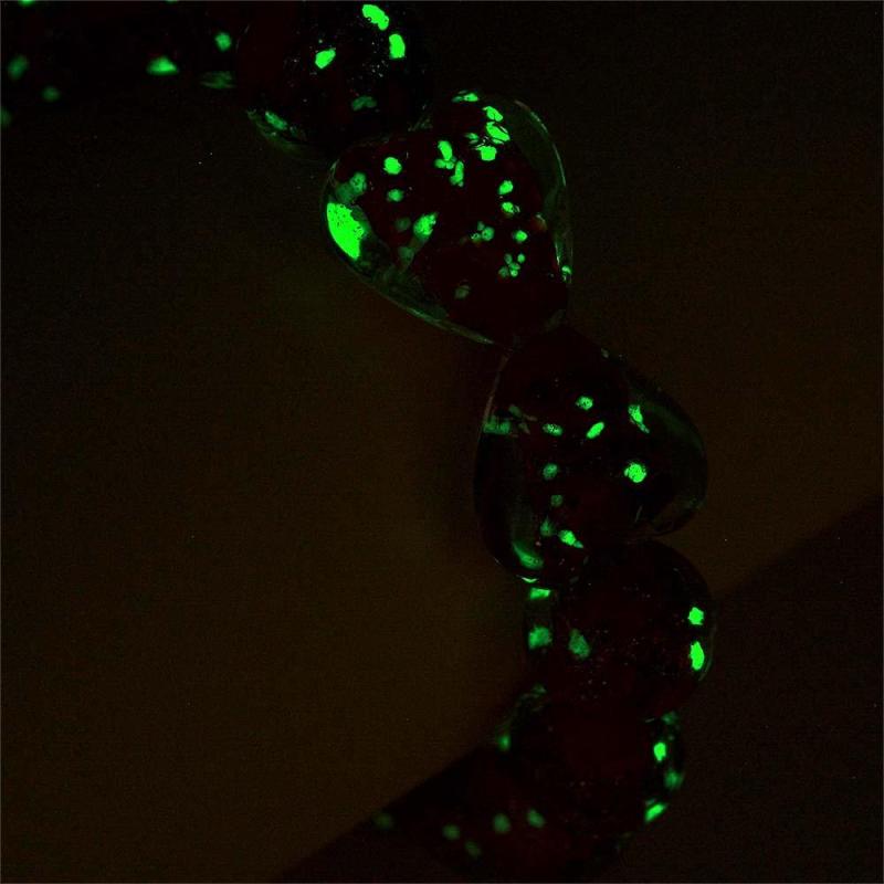 Red Heart-to-Heart Firefly Glass Stretch Beaded Bracelet Glow in the Dark Luminous Bracelet