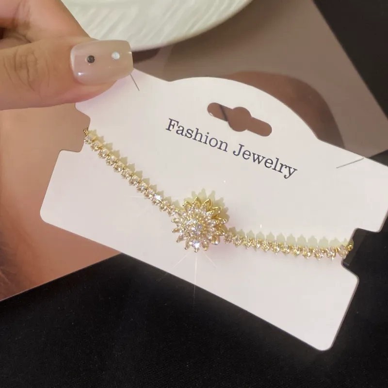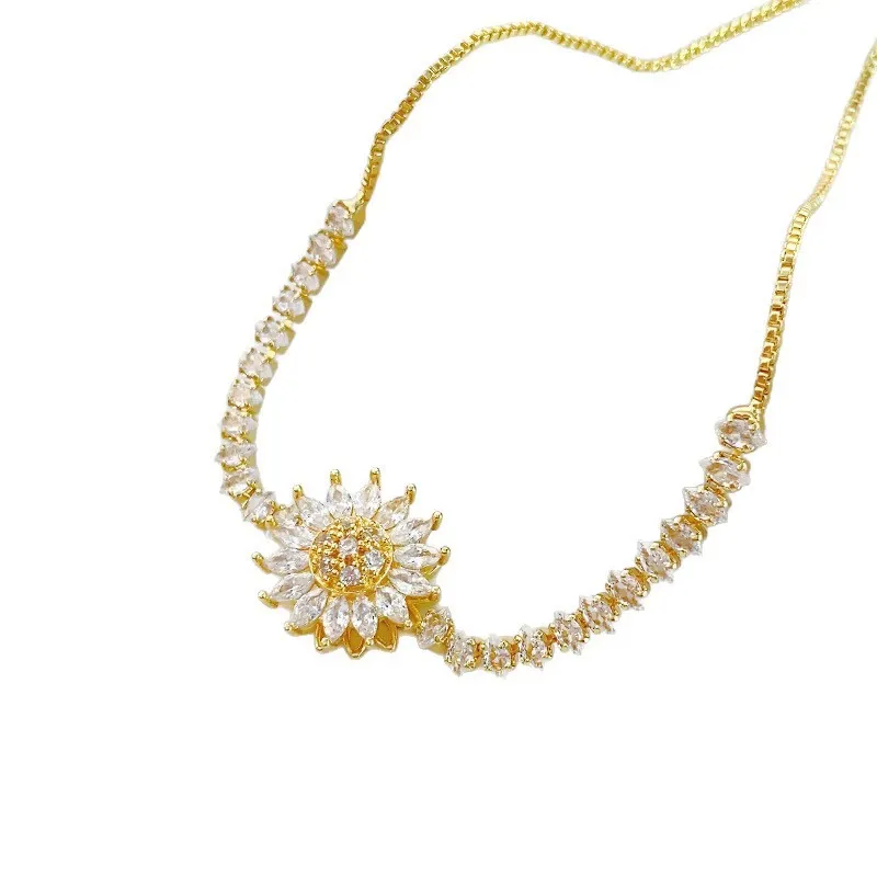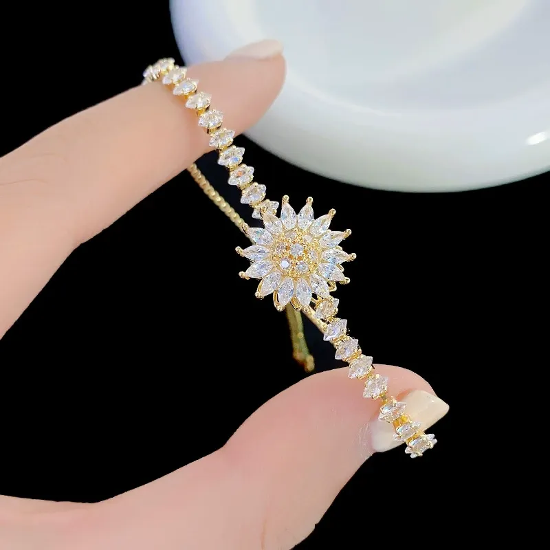 Rotating Sunflower Zirconia Bracelet - Adjustable Drawstring Sunflower Jewelry, Perfect Mother's Day Gift for Her | Dainty Rotatable Floral Bracelet with Sparkling Zircon Stones