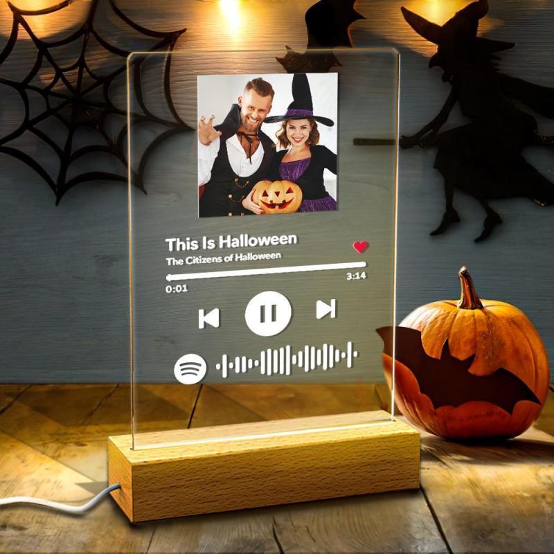This unique acrylic lamp is the best perfect gift for him/her at Christmas. Custom the Spotify code Plaque, and A Same Custom Spotify Code Keychain for Free. You can choose any song title, artist name, and favorite photos you want, all can be imprinted on the acrylic plaque, and you can generate a unique Spotify code. Please note that the acrylic plaque itself does not emit music. You have to scan the code on the Spotify app, after scanning the code on Spotify, your song will start playing immediately. At Halloween, I believe this is the most romantic gift, play the most beautiful music for your love.