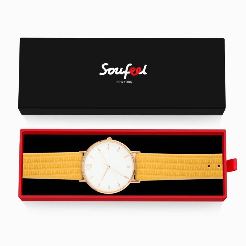 Soufeel adopts the watch movements manufactured by world's leading movement manufacturer Ronda in Switzerland and Citizen in Japan, you will enjoy the precise time as you wish. Daily life water resistant. It is a true designer statement and the perfect watch for any occasions. This watch has a simple and unique design, with a slim case, you can easily match any type of accessories to it. This classic timepiece is a perfect gift for you or your friends in a sleek and luxurious way. Soufeel has a ton of customized Jewellery options that are reasonably priced and make for great gifts for all sorts of occasions like birthdays, holidays, anniversaries. It's great for layering, a wonderful minimalist piece, perfect gift for your wife, girlfriend, husband, boyfriend or simply to treat yourself! Simply Style Dial Watch Yellow Leather Strap - Men's.