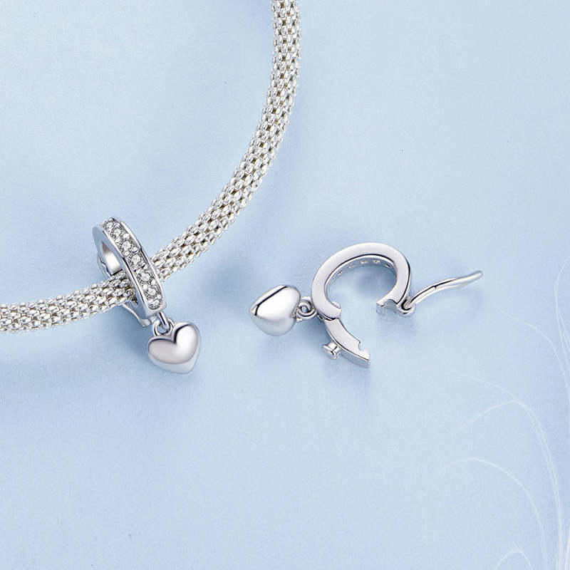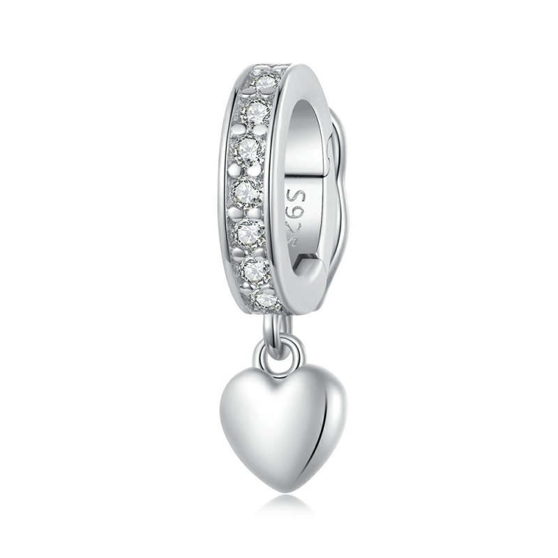 Solid Hearts Stopper Charm Spacer Charm Silver