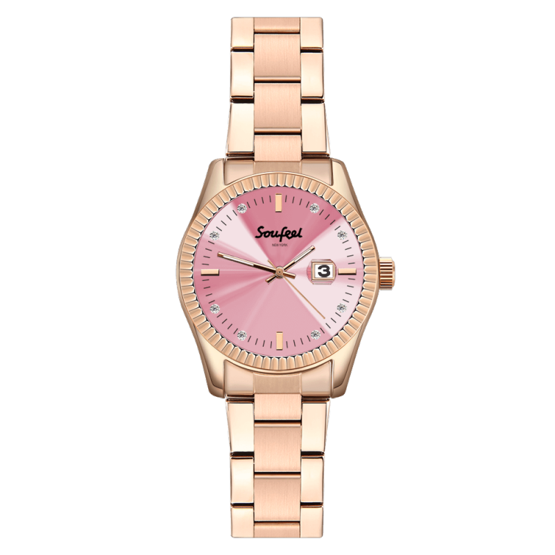 Soufeel Men's Stainless Steel Bracelet Watch Pink Dial 38.5mm