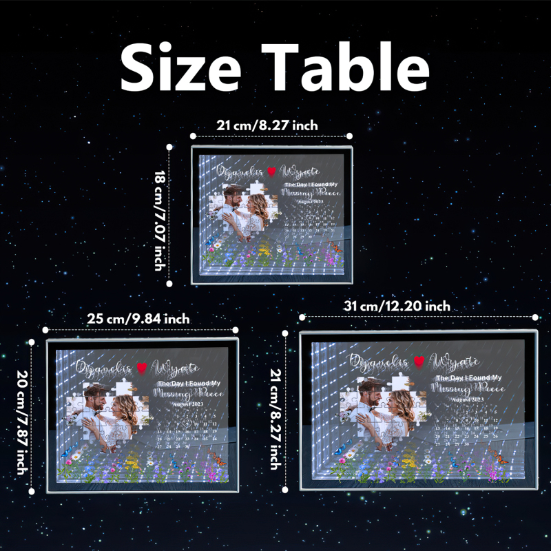 The Day I Found My Missing Piece Light Customize Photo and Calendar Custom Name Personalised Gift For Couple