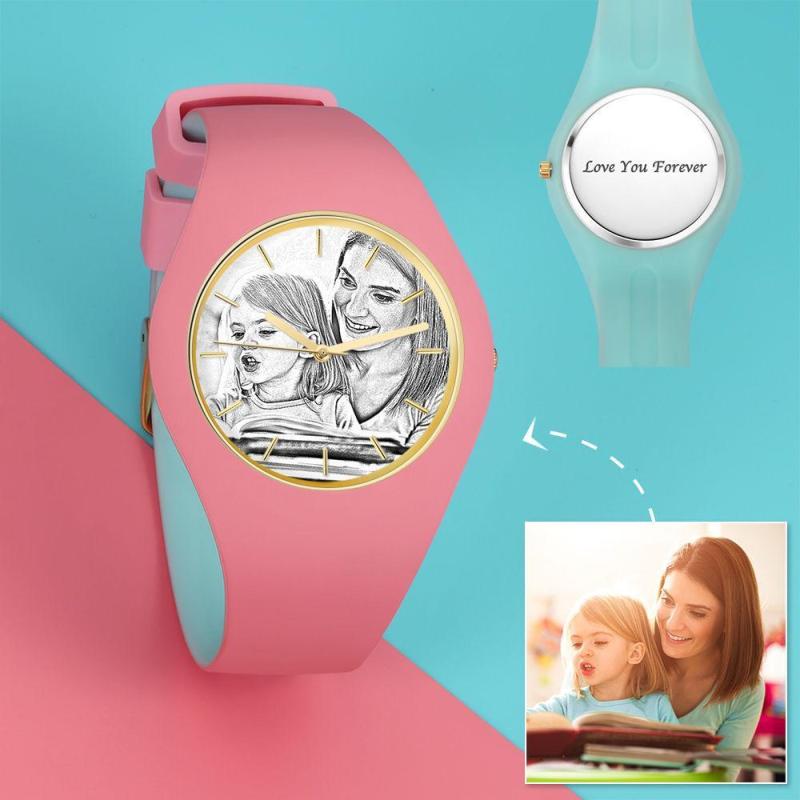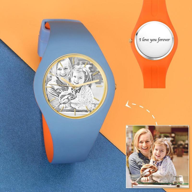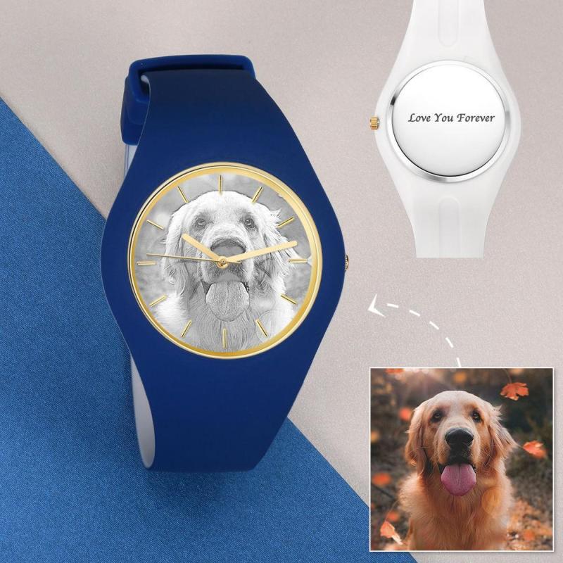 Unisex Silicone Engraved Photo Watch Unisex Engraved Photo Watch 41mm Blue and White Strap - Sketch