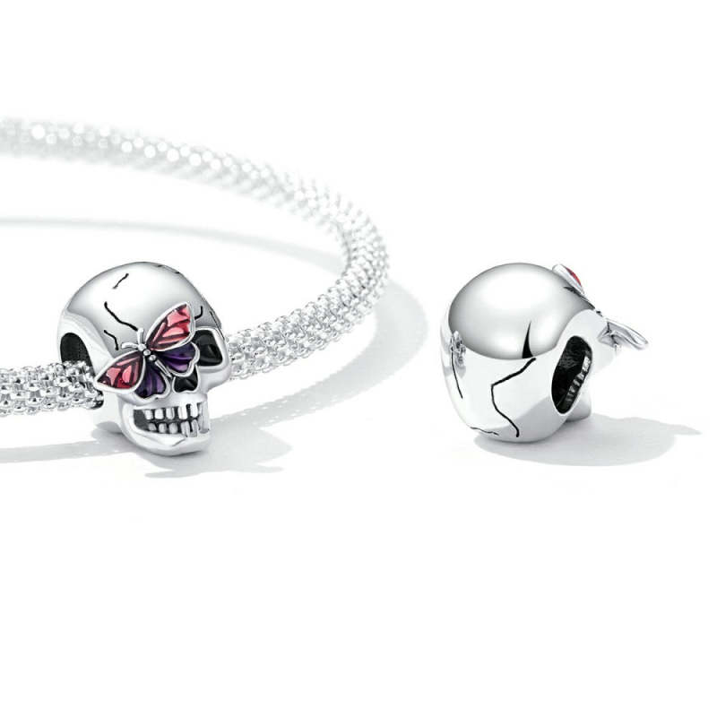 Vintage Skull Enamel Charm Silver Halloween Gifts