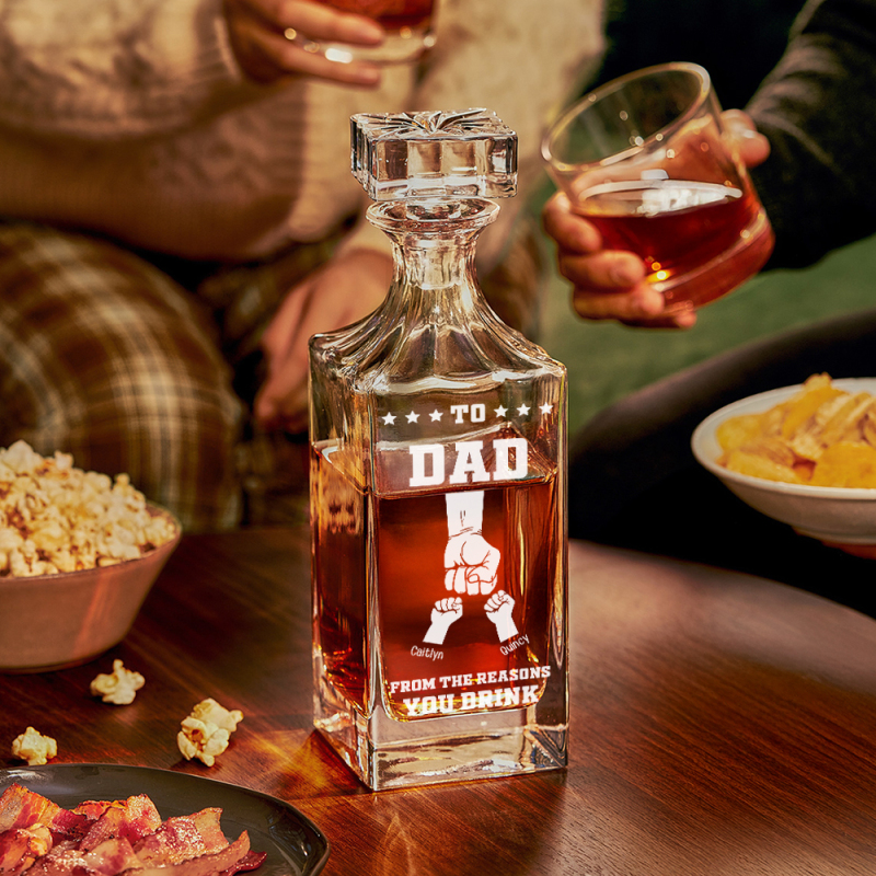 Give Dad a gift as bold and unforgettable as his sense of humor with this personalized whiskey bottle. Featuring the playful phrase To Dad, from the reasons you drink' and personalized with the kids' names, this keepsake bottle is both thoughtful and fun.