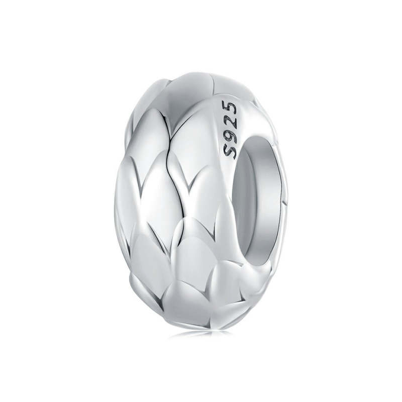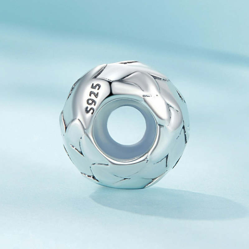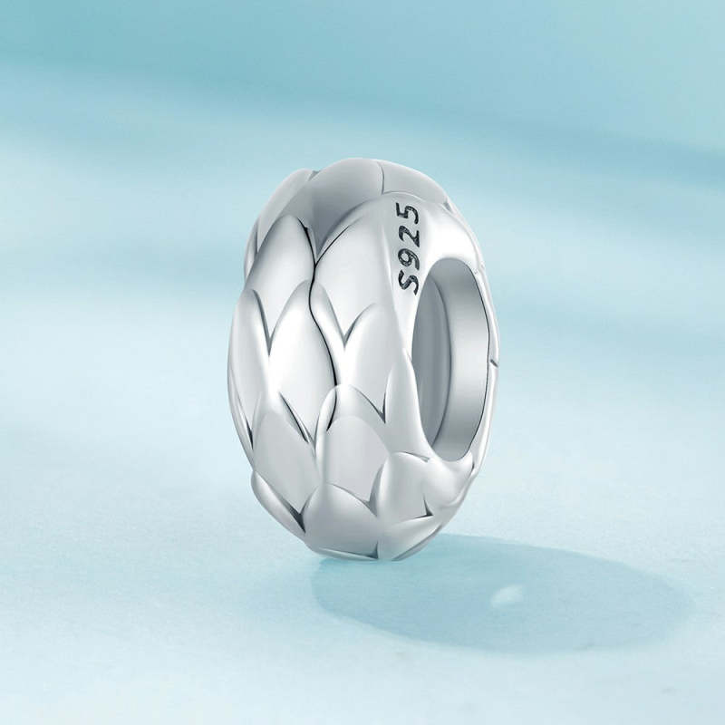 White Feathers Stopper Charm Spacer Charm Silver