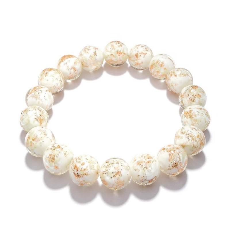 White Firefly Glass Stretch Beaded Bracelet Glow in the Dark Luminous Bracelet