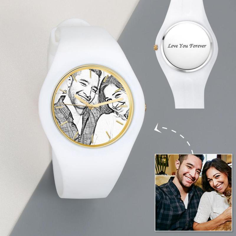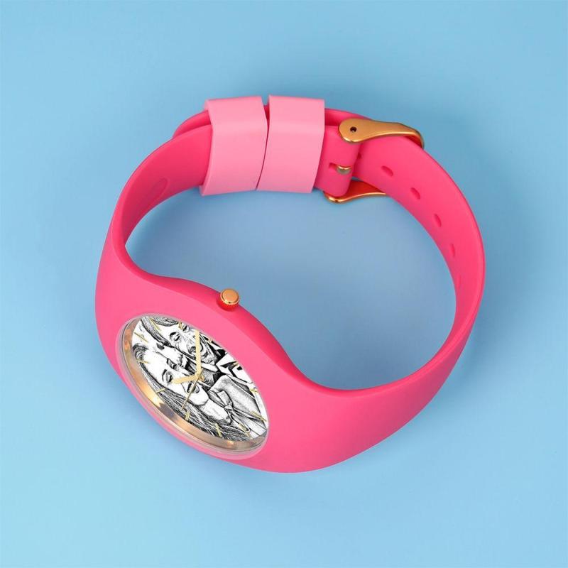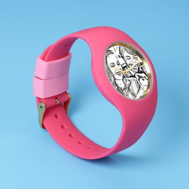 Women's Silicone Engraved Photo Watch Women's Engraved Photo Watch 41mm Pink Strap - Sketch