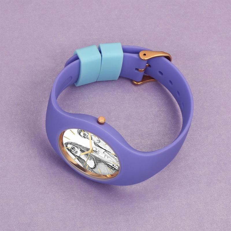Women's Silicone Engraved Photo Watch Women's Engraved Photo Watch 41mm Purple Strap - Sketch