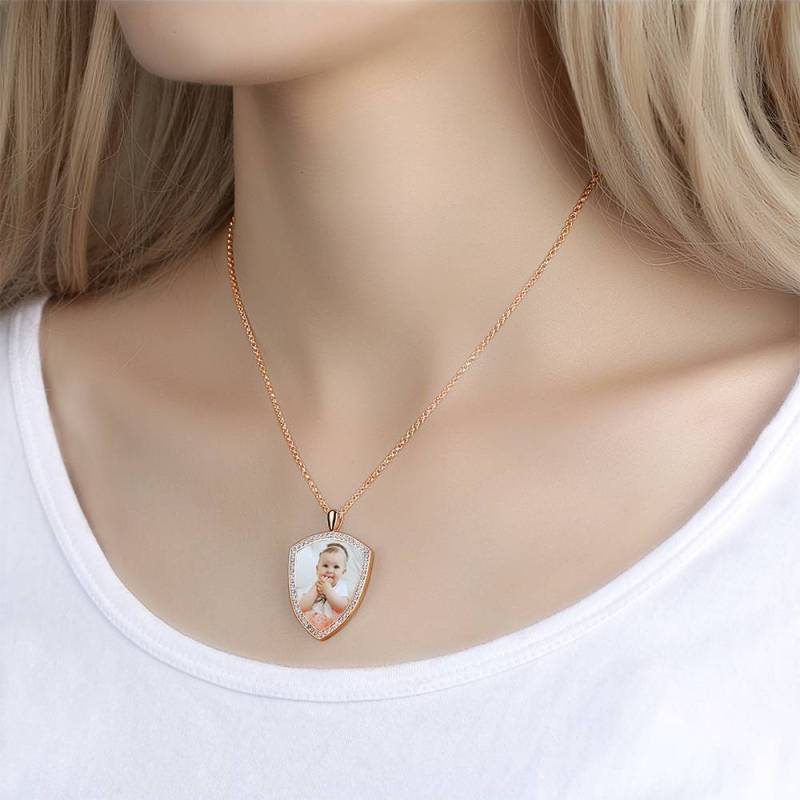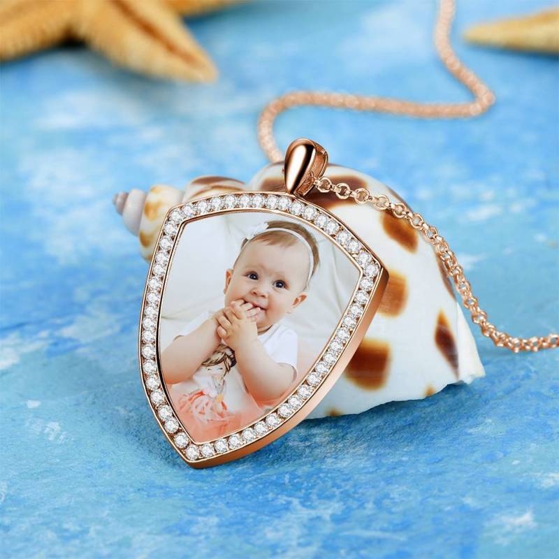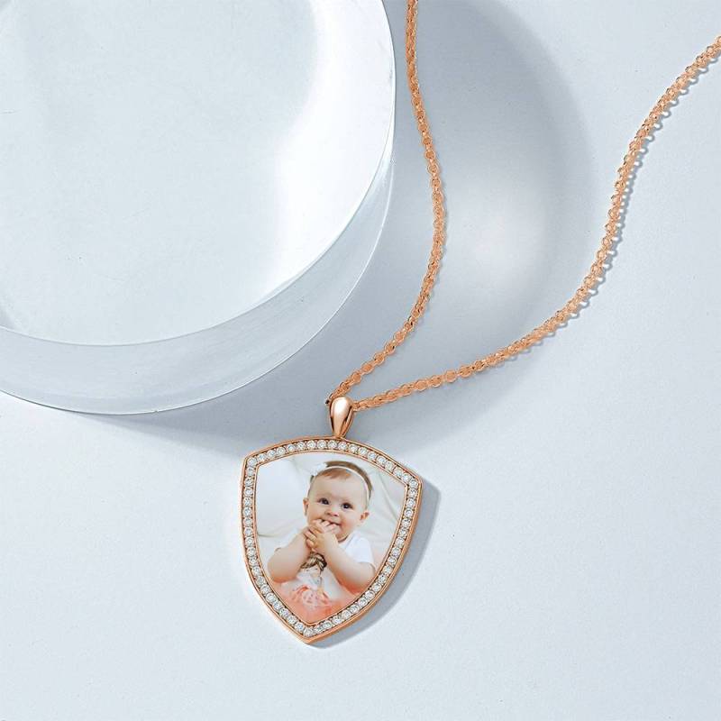 Personalised Soufeel Stainless Steel Tag Photo Pendant is the perfect way to keep your greatest memories close to the soul. This custom photo necklace is made of sturdy, stainless steel that will never tarnish so you can hold it close for many years to come. The perfect thoughtful, fun, and unique gift for any occasion! Soufeel has a ton of customized Jewellery options that are reasonably priced and make for great gifts for all sorts of occasions like birthdays, holidays, anniversaries, Father's Day. Women's Personalised Photo Engraved Necklace, Rhinestone Crystal Shield Shape Photo Necklace Rose Gold Plated - Colorful.